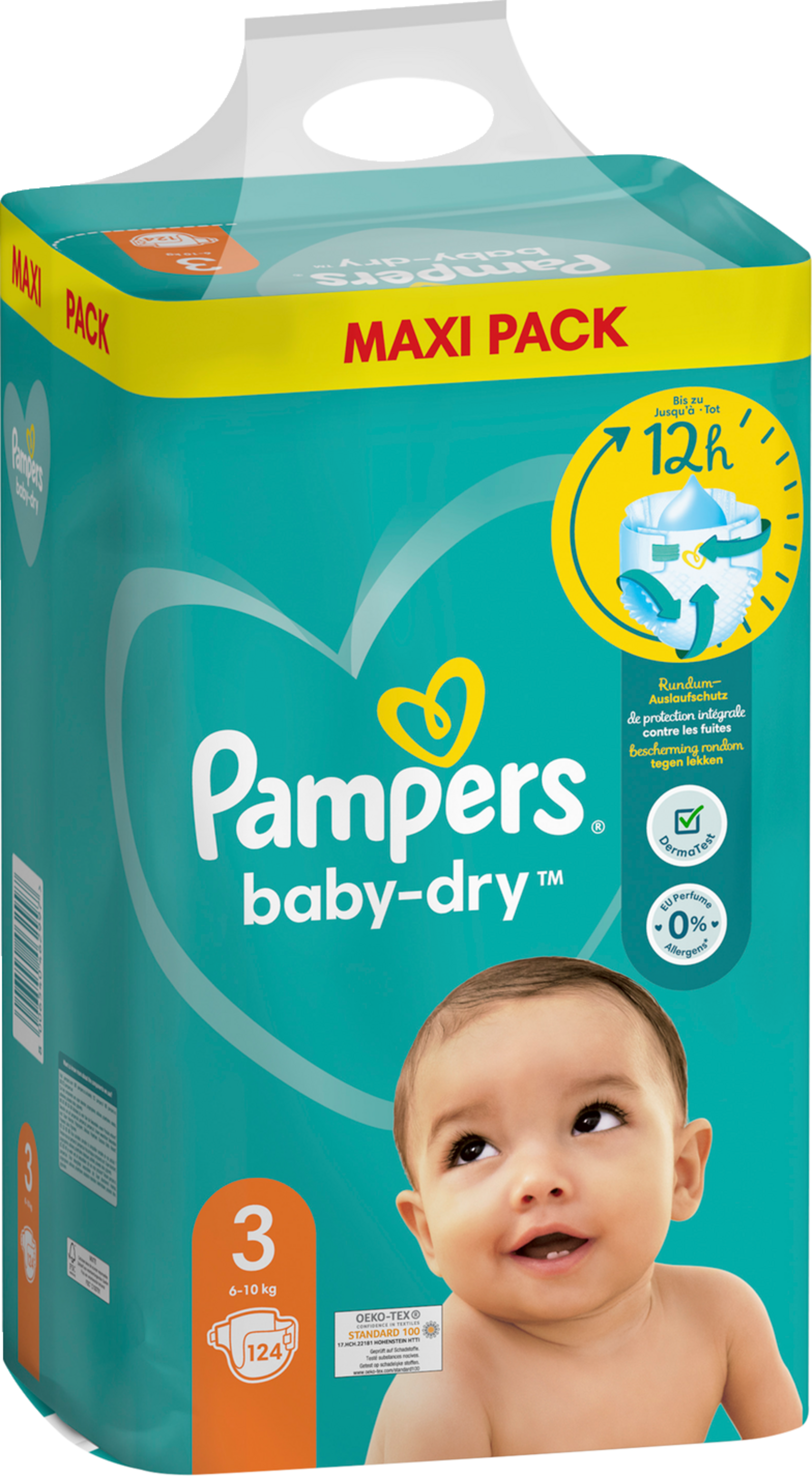 Pampers Baby-Dry T3 Midi 6-10kg Maxi Pack (124 pces)