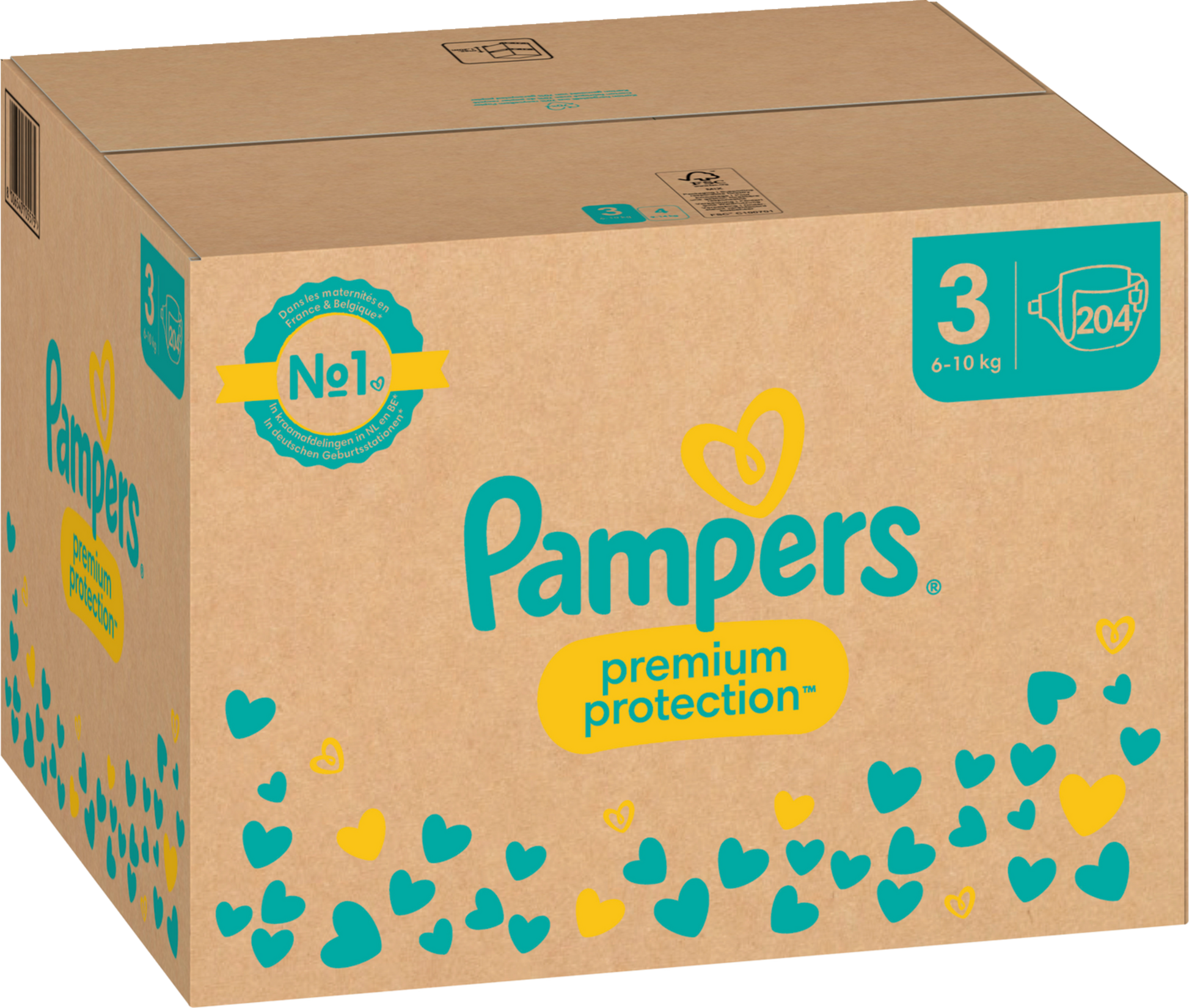 Pampers Premium Protection T3 Midi 6-10kg (204 pces) Pack mensuel