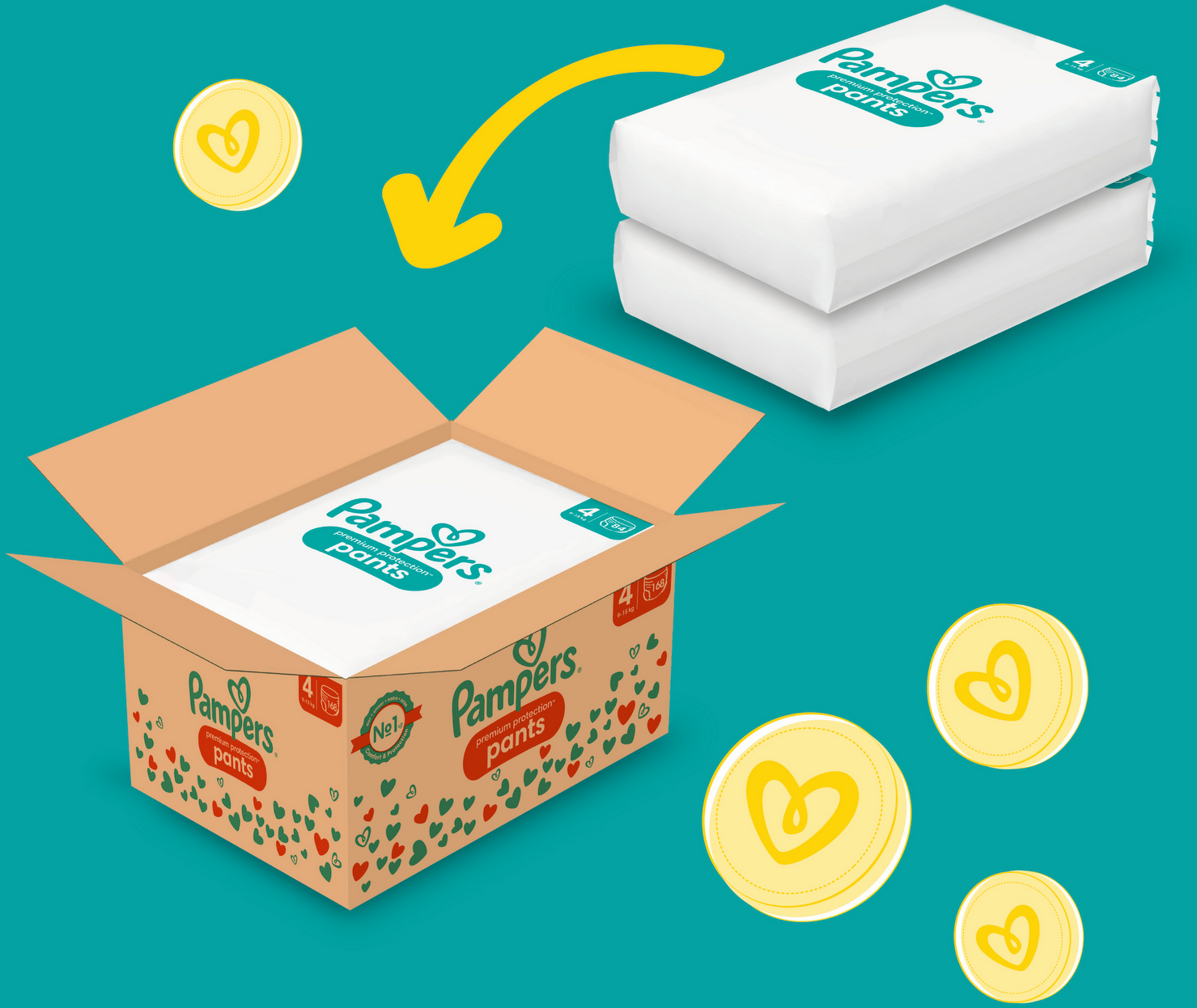 Pampers Premium Protection Pants T4 Maxi 9-15kg (168 pces) pack mensuelle