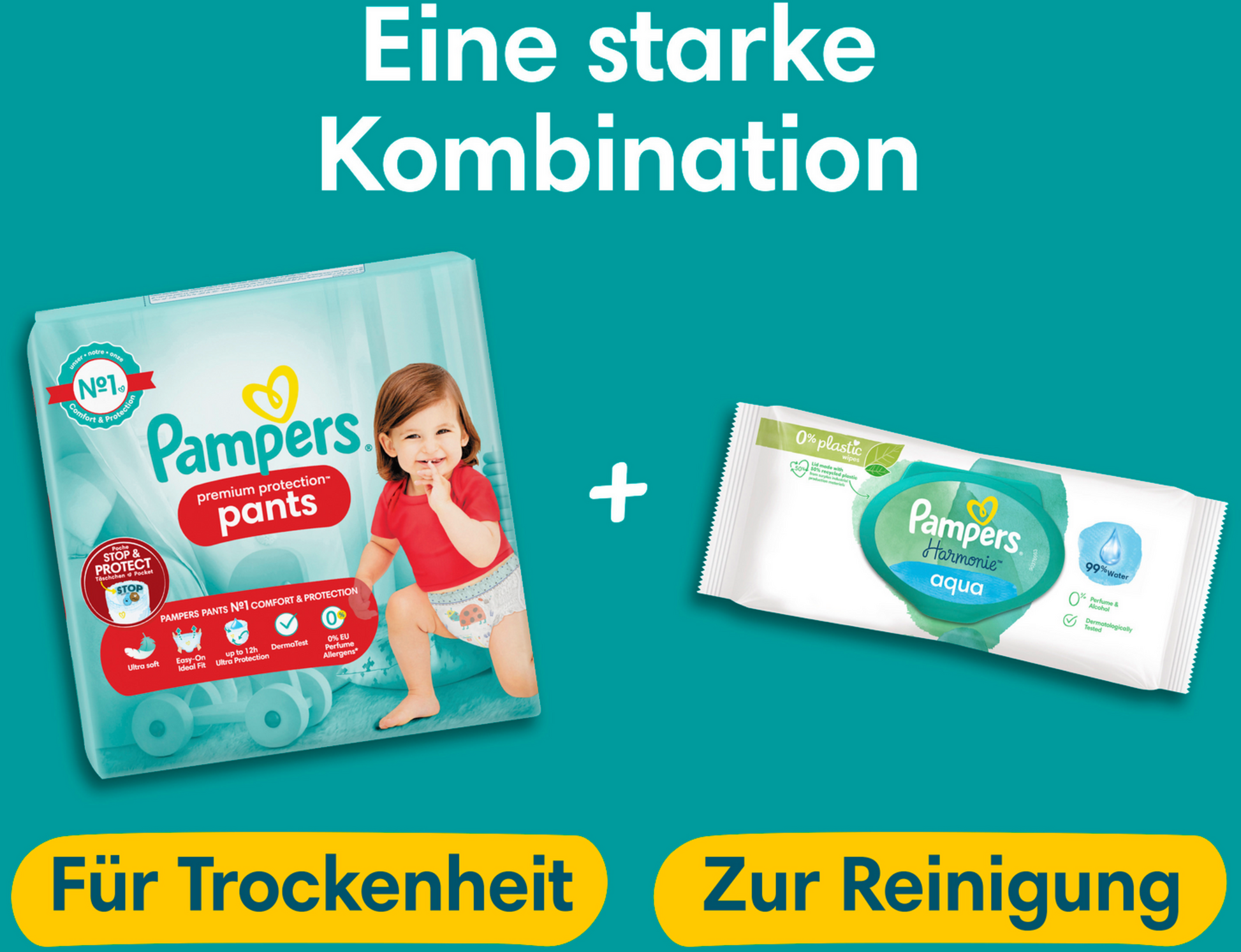 La protection et le confort de Pampers avec les Pampers Premium Protection Pants : la poche révolutionnaire STOP & PROTECTION aide à éviter les fuites dans le dos. Lorsque les bébés commencent à être plus actifs et à se retourner pour changer leur couche, il est temps d'utiliser les Pampers Premium Protection Pants qui permettent de les changer facilement. Les Pampers Premium Protection Pants, comme tous les Pampers Pants, sont faciles à changer : ils s'enfilent d'un seul coup, se retirent en déchirant légèrement les côtés, s'enroulent et se ferment avec la bande adhésive pour une élimination facile - même lorsque le bébé bouge d'avant en arrière.