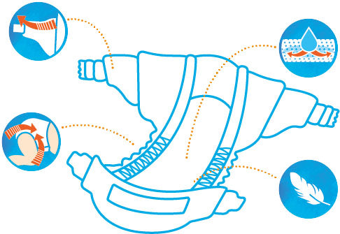 - Matériaux de voile intérieur et barrières antifuites sont faites d'un matériau plus doux et plus léger.